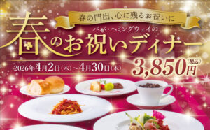 【2026年春】大切な門出を彩る。パパ・ヘミングウェイの「春のお祝いディナー」が期間限定で登場!