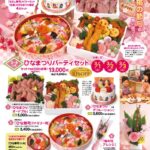 | ひなまつりオードブル | ローストビーフ、エビフライ、煮込みハンバーグ、鴨ロースなど、お子様も喜ぶメニューがぎっしり! | 5,400円 |