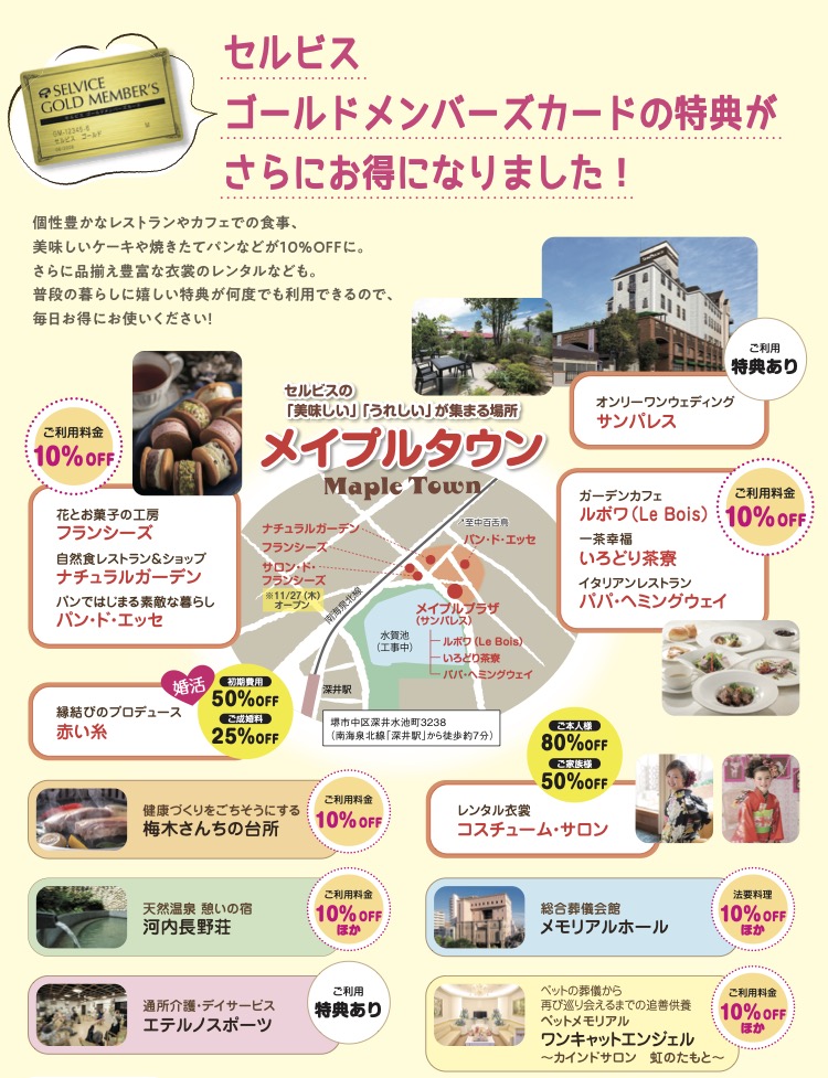 セルビスゴールドカード(セルビスメンバーズ入会の際、同時入会のみ)は、セルビスグループのさまざまな施設やサービスを、日々の暮らしの中でお得に利用できる会員カードです。