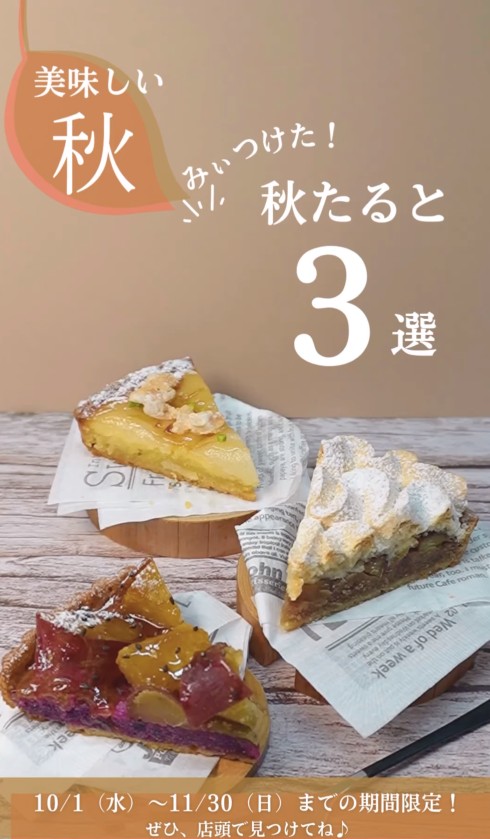 これらの特別な「秋たると」3種は、2025年10月1日(水)から11月30日(日)までの期間限定販売です。 この機会にぜひお店に足を運び、旬の味わいを堪能してください。 大切な方への手土産や、ご家族とのティータイムにもぴったりです。