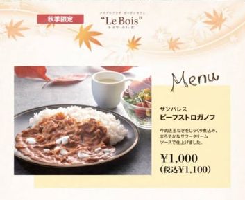 メイプルプラザ・サンパレス1階にある『ガーデンカフェ ルボワ』では、食欲の秋にぴったりの期間限定メニュー「ビーフストロガノフ」が登場しました。