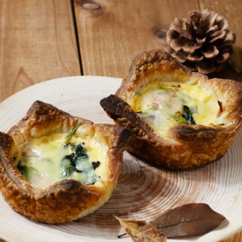 人気のクロワッサン生地でキッシュが登場!ほうれん草とベーコンの黄金コンビの美味しさは間違いなし。ランチにもぴったりな、リッチな味わいです。