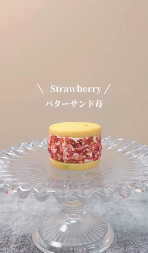• バターサンド苺 サクサクのサブレで、濃厚なバタークリームと甘酸っぱい苺ジャムをサンド!王道の組み合わせは、誰もが笑顔になる美味しさです。