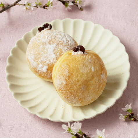 当店大人気の生ドーナツに桜味が新登場!かのこ豆とクリームの相性がばっちりで、ペロリと食べられちゃいますよ。