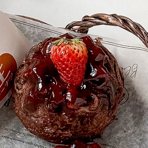 サクサクのショコラデニッシュにイチゴゼリーを乗せて焼き上げ、クリームチーズホイップとフレッシュないちごをトッピング!見た目も華やかな一品です。
