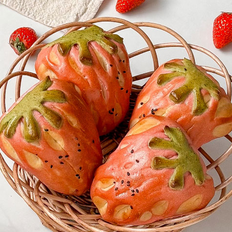 ころんとした「苺のかたち」が可愛すぎるパンが登場!中には苺のフロマージュクリームを包み込んでいます。ひとつひとつ表情の違ういちご達に癒されてくださいね。