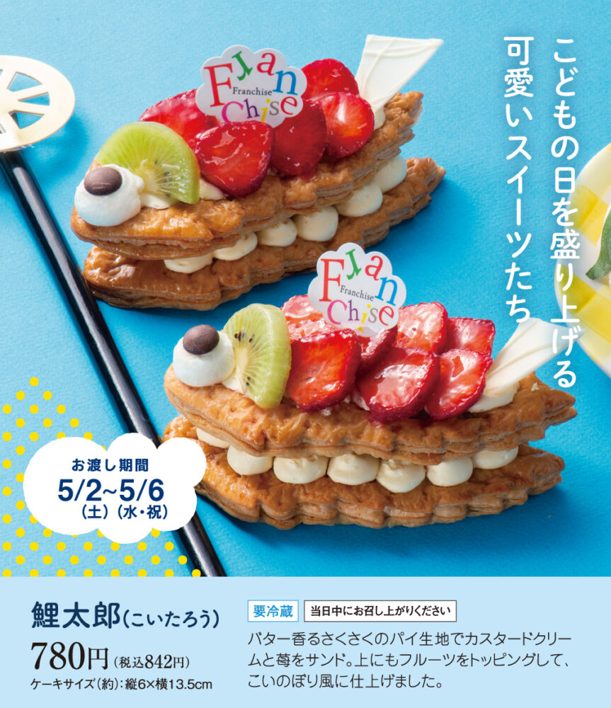 • 鯉太郎(こいたろう) 🥧 サクサクのパイにカスタードと苺を乗せた、おしゃれな「こいのぼり型」ミルフィーユ。