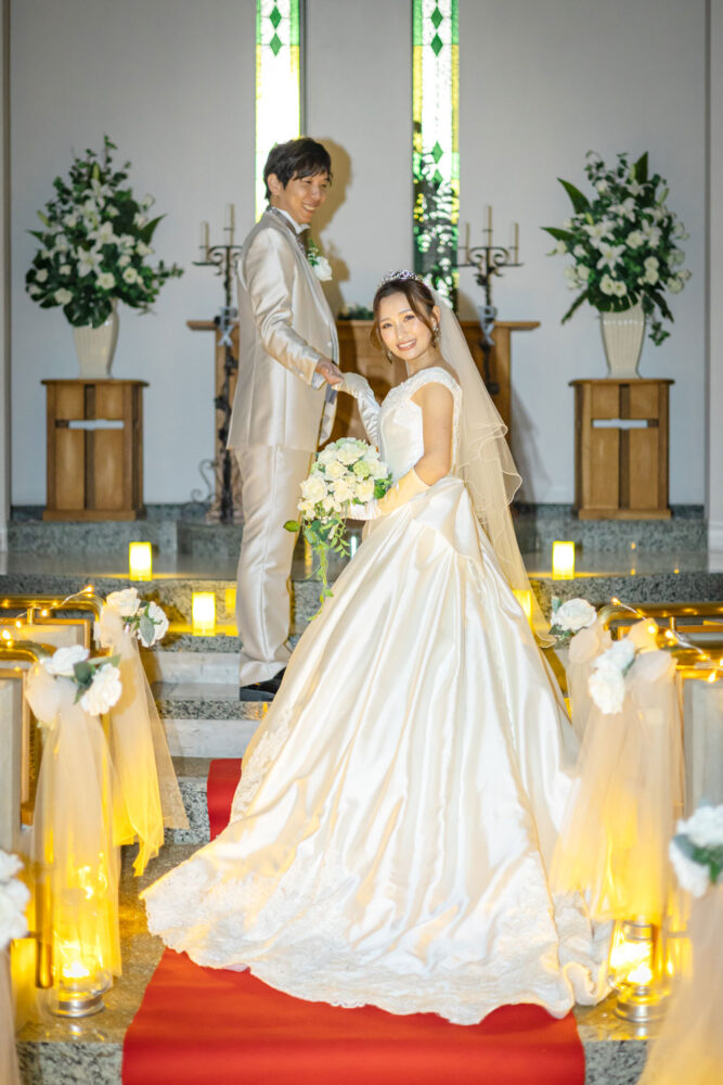 ロマンチックにライトアップされたチャペルでの撮影体験。(希望者のみ/データ1枚プレゼント)